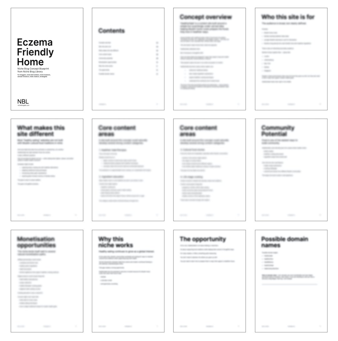 The Eczema Friendly Home Concept Blueprint explores the opportunity to build a niche content site dedicated to helping families create living environments that support sensitive skin.